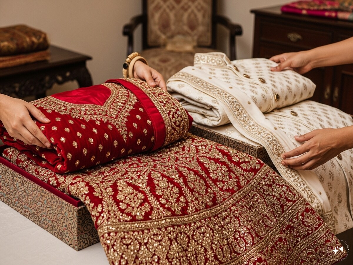 How To Store Wedding Outfits : सही तरीके से स्टोर किया गया ब्राइडल लहंगा और दूल्हे का सूट सालों तक नए जैसा लगता है. इन आसान टिप्स को फॉलो करके आप अपने ब्राइडल लहंगे और दूल्हे के सूट को सालों तक नए जैसे, फ्रेश और सुंदर रख सकती हैं. सही स्टोरेज, सफाई और देखभाल आपके शादी के खास कपड़ों की उम्र लंबी करती है. जानें तरीका.