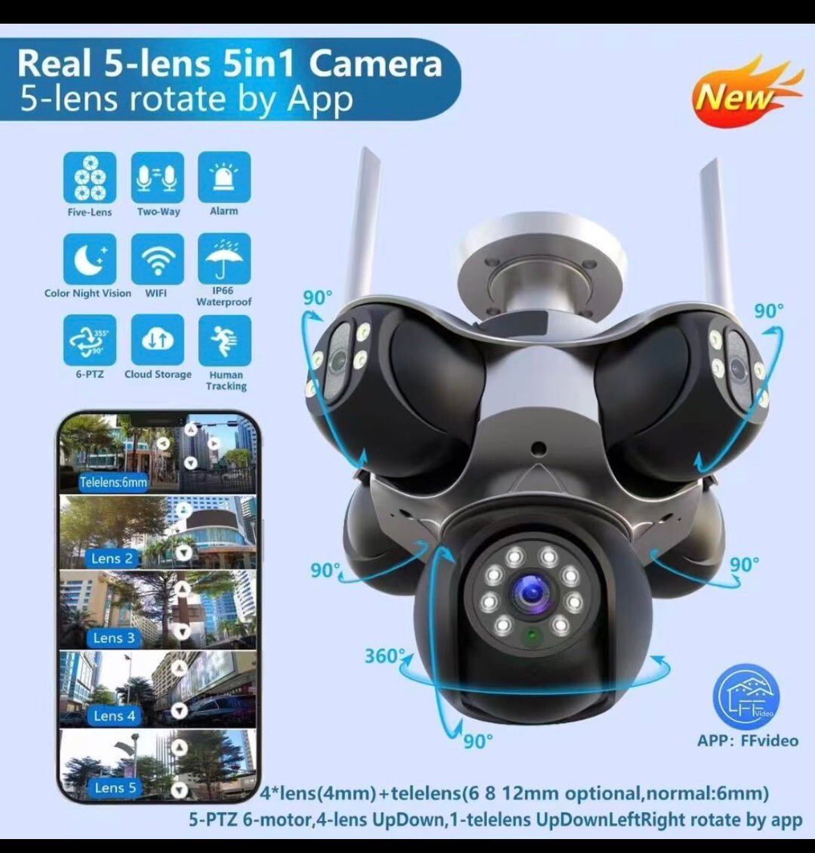 Real 5-Lens 5-in-1 WiFi Smart Security Camera (PTZ, AI Tracking)
